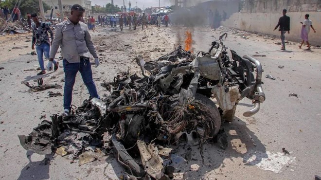 A suicide car bomb targeting a government convoy exploded in Somalia's capital on Saturday, killing at least eight people including a woman. (Credit: AP)
