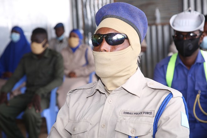 HirShabelle State Police officers attend the closing of a VIP Close Protection course held in Jowhar, Somalia on 19 July 2021. AMISOM Photo