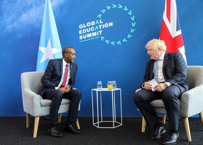London (HOL) - Somalia's Prime Minister Mohamed Hussein Roble met with his UK counterpart, Boris Johnson, in London on Thursday during the Global Education Summit.