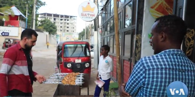 Thirteen-year-old Mohamed Musa and his family arrived in Mogadishu just a few days ago. They dine with Somali locals, who are now accustomed to Syrian cuisine.