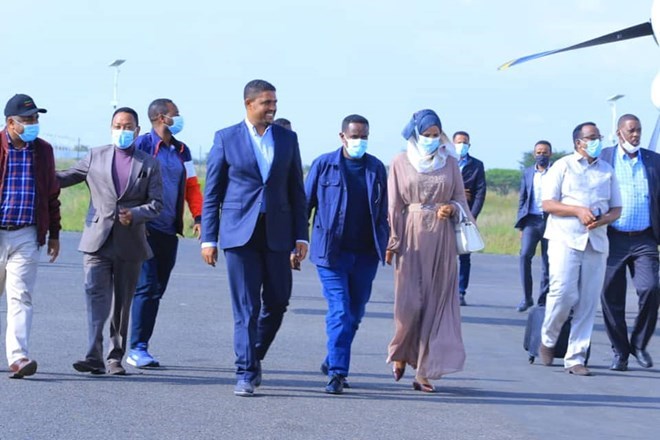 Shimelis Abdisa's delegation landed at the Garaad Wiil-Waal International Airport in Jigjiga, where Somali regional president, Mustafa Cagjar, welcomed him.