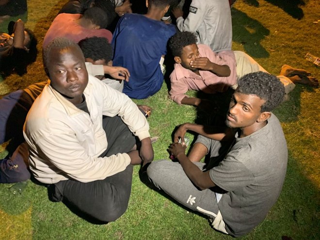 Migrants are seen after they were detained by Libyan security forces in Tripoli, Libya October 8, 2021. REUTERS/Ayman Al-Sahili