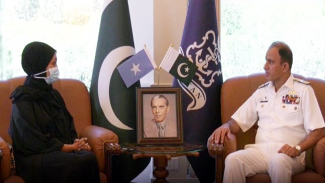 Ambassador of Somalia Khadija Mohamed Almakhzoumi visited Naval Headquarters in Islamabad on Monday and met Chief of the Naval Staff Admiral Muhammad Amjad Khan Niazi.