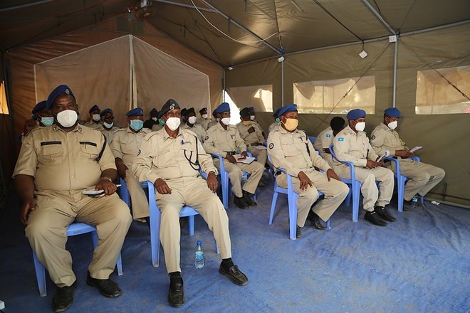 South West State Police at the closing session of a training on election security conducted by the police component of the African Union Mission in Somalia (AMISOM), in Baidoa, Somalia on 30 December, 2020. AMISOM Photo
