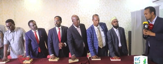 Mogadishu (HOL) - The 16 Gedo MPs elected in Garbaharey were sworn into office on Monday evening at the SYL Hotel in Mogadishu, despite Gedo MPs being sworn into office in a separate ceremony just hours earlier.