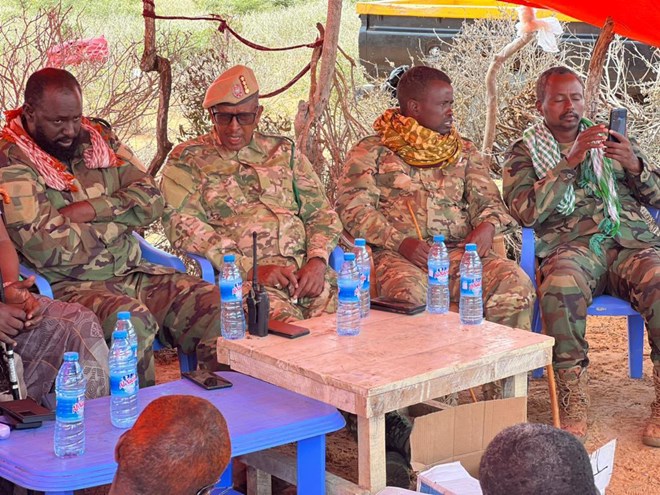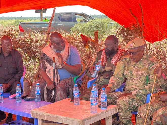 Jowhar (HOL) - General Mohamed Talil Bihi, the commander of Somalia's land forces, paid a visit to soldiers and elders in Middle Shabelle, not far from where Somali forces killed 88 Al Shabaab fighters.