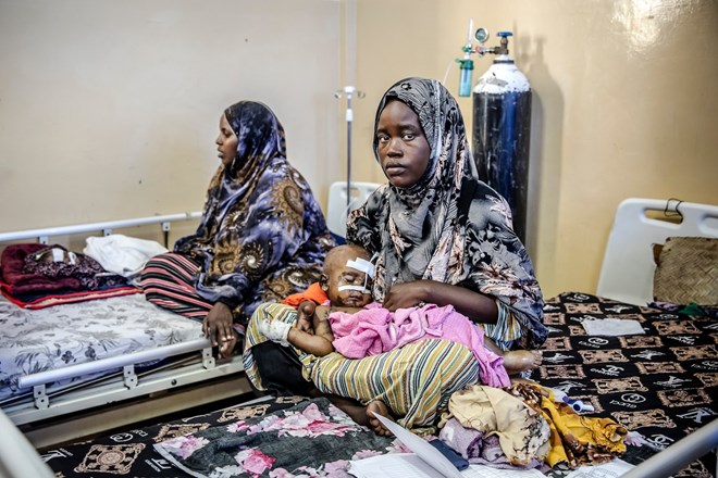 Mana Abdullahi Aden, 28, holds her severely malnourished 17-month-old, Munasar Ali, at Banadir Hospital in Mogadishu, the Somali capital.