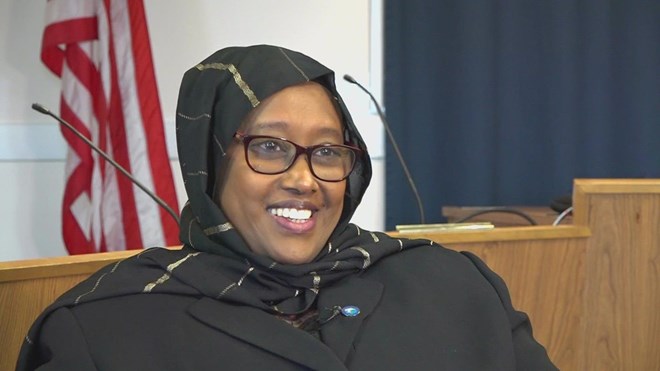 one of two Somali women elected to the Maine House. (AP Photo/Robert F.
