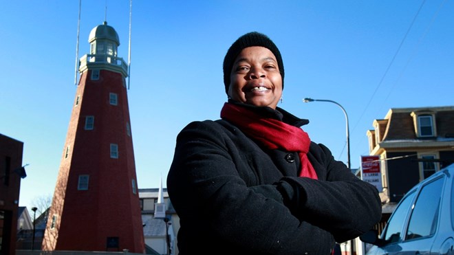 FILE - Jill Duson, poses in this Dec. 13, 2008, file photo, near the Portland Observatory in Portland, Maine. Duson is the first Black woman elected to the Maine Senate.(AP Photo/Robert F. Bukaty, file)
