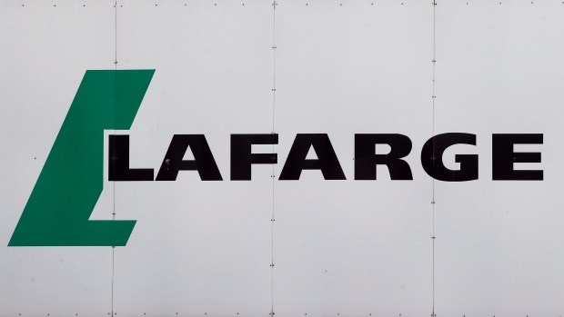 A logo of Lafarge, the world's largest cement maker, is pictured outside of a facility, in Paris, Sept. 8, 2017. (AP Photo/Francois Mori, File)