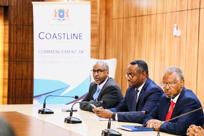 The PSAs (production-sharing agreements) was signed by the Minister of Petroleum & Mineral Resources, Abdirisak Omar Mohamed, and the CEO of Coastline Exploration.