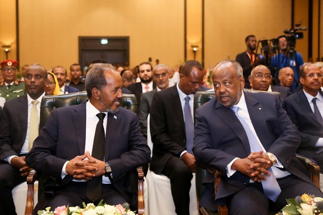 President Hassan Sheikh Mohamud, and his Djibouti counterpart, Ismail Omar Guelleh, jointly inaugurated the environmental research center in Djibouti.