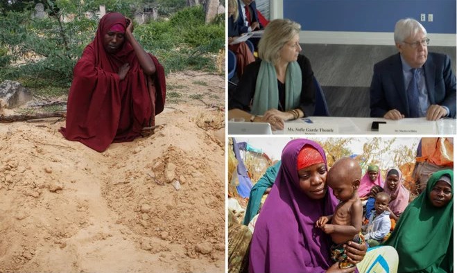 UN relief chief Martin Griffiths (top right), on his first visit to Somalia described the level of suffering as “truly shocking.” (AFP/UNTV)
