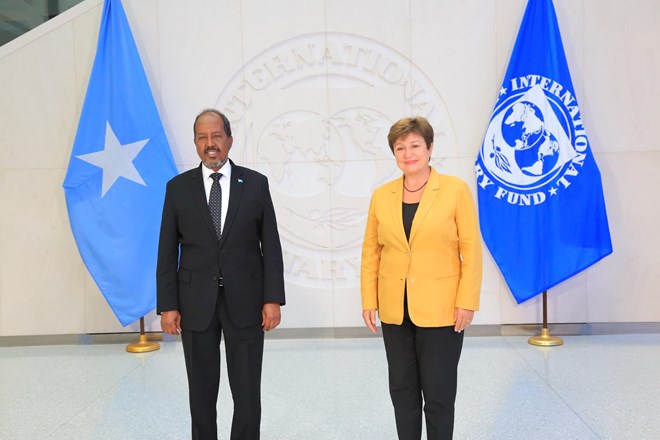 Mogadishu (HOL) - Somali President Hassan Sheikh Mohamud met with IMF Managing Director Kristalina Georgieva at the International Monetary Fund (IMF) headquarters in Washington on Friday.