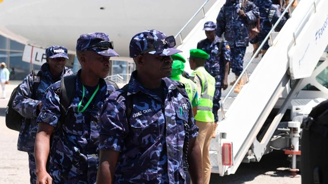 Ugandan soldiers serving under Atmis disembarking from an aircraft upon arrival at Aden Abdulle International Airport in Mogadishu, Somalia on March 1, 2023. Mogadishu says it is willing to prolong the stay of the regional force, signalling the challenge of beating down Al-Shabaab. PHOTO | COURTESY | ATMIS