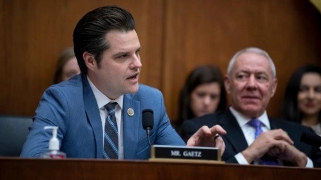 Rep. Matt Gaetz, R-Fla., left, at a House Judiciary Committee meeting at the Capitol in Washington, Wednesday, Feb. 1, 2023. (AP Photo/J. Scott Applewhite)