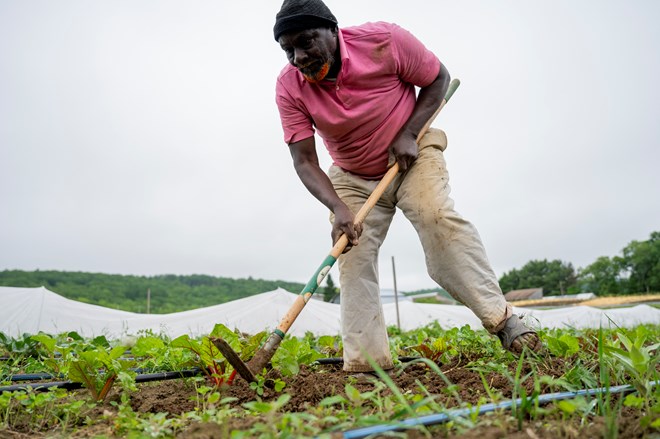 Ahmed Baraki works in the community garden at Liberation Farms in Wales, Maine.VINCENT ALBAN FOR THE BOSTON GLOBE