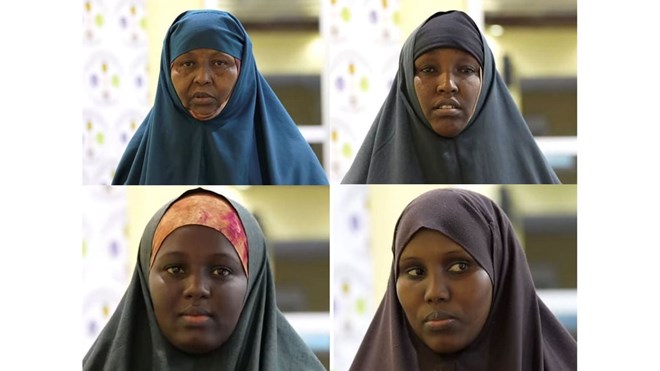A photo combination of video frame grab images of the four women arrested and arraigned in a military court in Mogadishu, Somalia, based on charges of assisting the Al Shabaab on August 9, 2023. PHOTO | ARMED FORCES COURT OF SOMALIA