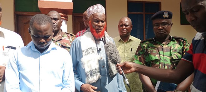 Dadaab sub county peace chairman Osman Ibrahim Abdi speaking to the press.