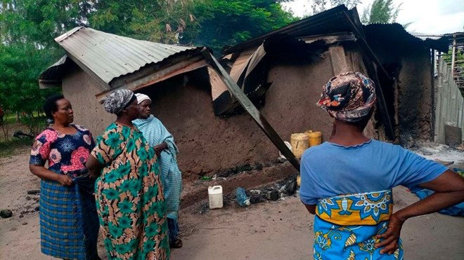 Women are seen in front of destroyed house in Salama village, Lamu County, Kenya on June 26, 2023. PHOTO | KALUME KAZUNGU | NMG