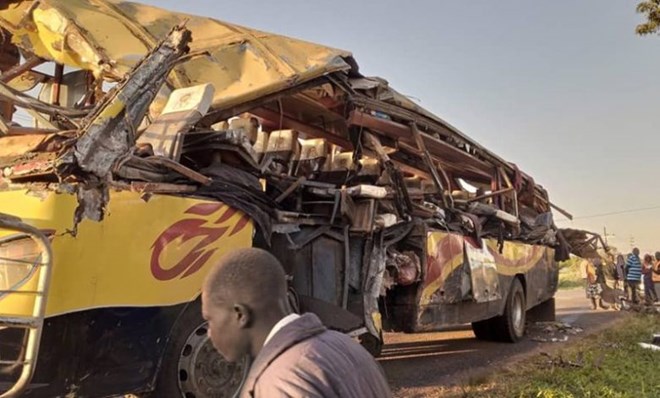 At least 16 people were killed when a passenger bus rammed into a stationary lorry on Friday morning on Uganda’s highway that links the capital, Kampala, to the northern town of Gulu.