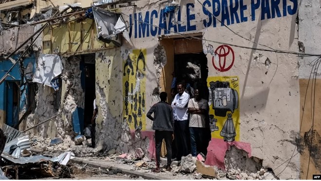 FILE - More than 300 Muslim clerics have declared their support for the government's war against the Islamist militant group al-Shabab, which has attacked much of Somalia, including this building in Mogadishu as seen on Aug. 21, 2022.