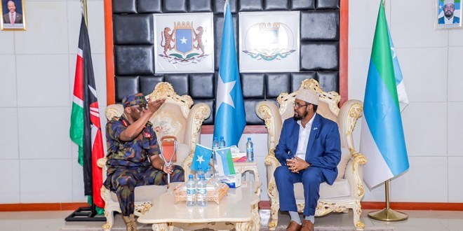 Kismayo (HOL) - Kenya's Chief of Defence Forces, Gen. Francis Omondi Ogolla, met with Jubbaland Regional State President Ahmed Madobe at the Presidential Palace in Kismayo on Saturday.