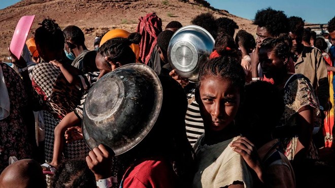 Ethiopian children wait in a line for a food distribution. PHOTO | AFP