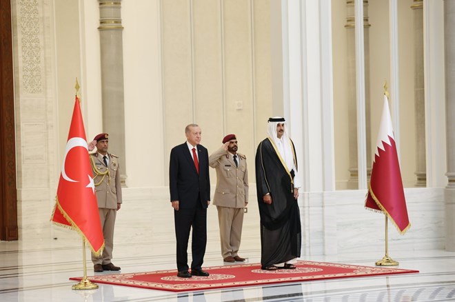 Qatari Emir Sheikh Tamim bin Hamad Al Thani welcomed Erdoğan with an official ceremony. They are holding one-on-one talks followed by inter-delegation meetings.