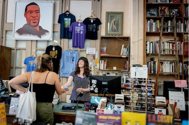 Magers & Quinn Booksellers in Minneapolis is one of the stores that sells Green Card Voices books, though 70% of the publishers buyers supply schools and libraries. ELIZABETH FLORES, STAR TRIBUNE