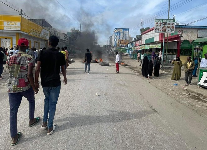 Borama (HOL) - Security forces in Somaliland in Borama, the administrative capital of Awdal, clashed with protesters on Monday as demonstrators demanded justice for a Coast Guard officer killed by a fellow soldier last week in Lawyacado, a coastal village in the Awdal region bordering Djibouti. Protesters threw rocks at government buildings, blocked city streets, and set tires ablaze. No casualties have been reported so far.
