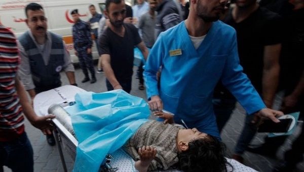Palestinian child injured during Israeli shelling, Gaza, May 10, 2023. | Photo: Twitter/ @MuhammadSmiry