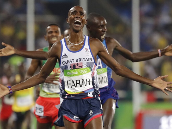 Farah wins gold in the men's 5,000 meters at the 2016 Olympics in Brazil. File photo: AP
