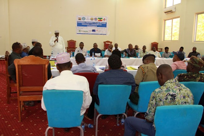 Delegates from Kenya, Ethiopia and Somalia attending the Mandera Triangle Cross-Border forum in Mandera town.