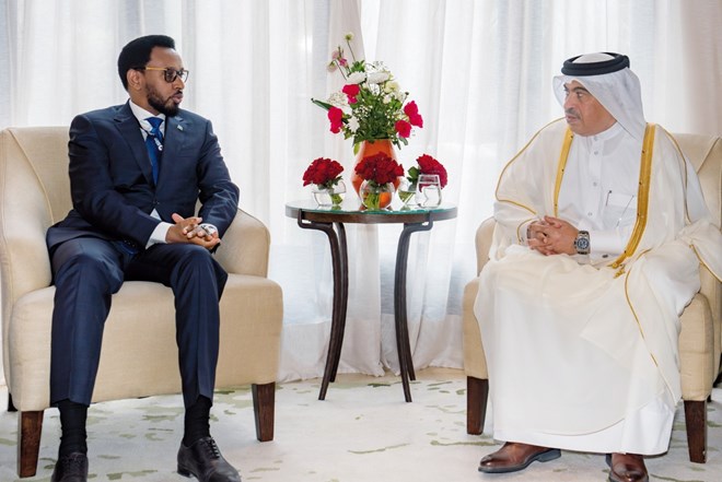 Minister of Finance H E Ali bin Ahmed Al Kuwari met with Minister of Finance of the Federal Republic of Somalia H E Bihi Iman Egeh on the sidelines of the Annual Meetings of the Boards of Governors of the World Bank Group (WBG) and the International Monetary Fund (IMF) held in Marrakesh, Kingdom of Morocco.