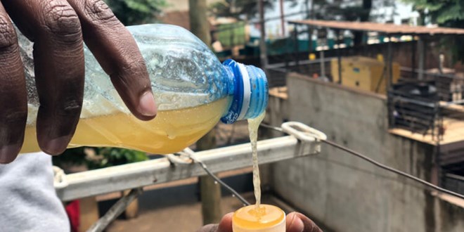 He keeps his bees in 21 boxes in a farm four kilometres away that he fenced. He goes there every morning to take the bees water.