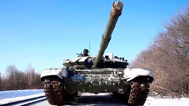 A Russian tank in a firing exercise field. PHOTO | AFP