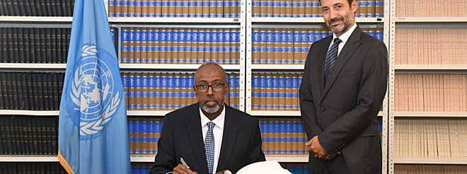 The event was attended by Abukar Dahir Osman, Permanent Representative of the Federal Republic of Somalia to the United Nations, who signed on behalf of his country, and David Nanopoulos, Chief of the Treaty Section of the UN Office of Legal Affairs.