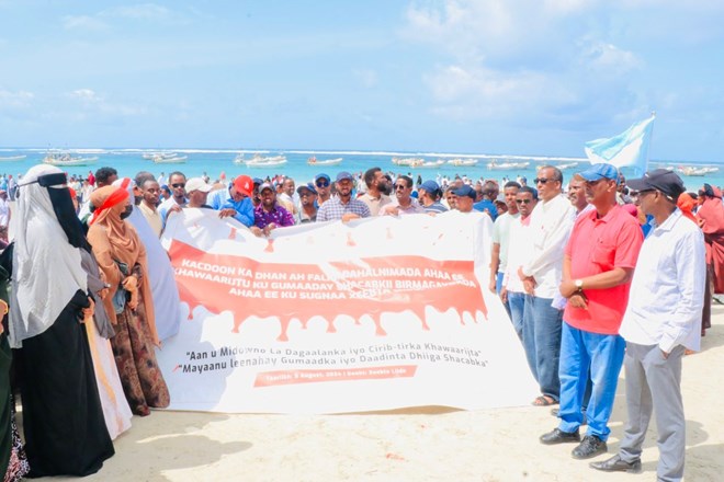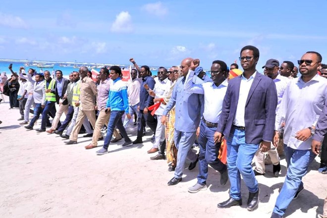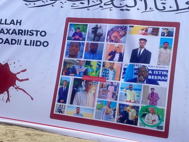 Security forces cordoned off the streets leading to Liido Beach, where the demonstration took place. Government officials, including ministers, joined the protesters, who carried Somali flags and posters with anti-al-Shabab slogans, chanting along the beachfront where the attack occurred.