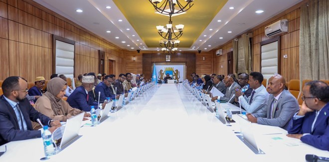 Mogadishu (HOL) — Somali Deputy Prime Minister Saleh Ahmed Jama chaired a Council of Ministers meeting on Saturday night to discuss the ongoing revisions to the country's provisional constitution, focusing on Chapters 5 and 9.