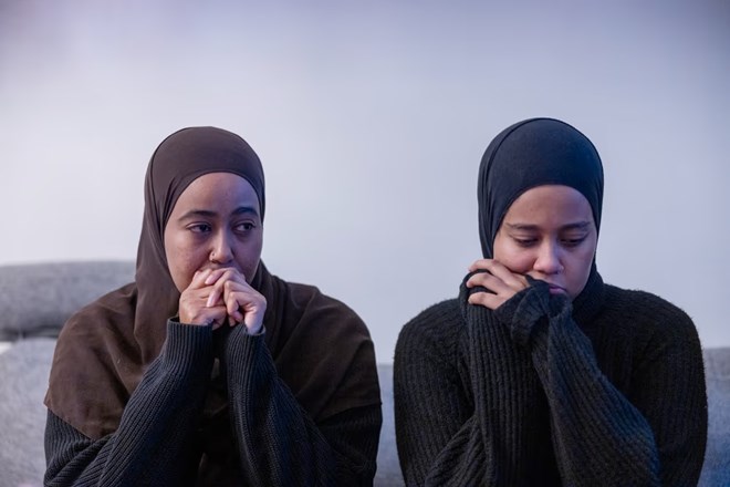 Nimo’s younger sister Hibo (left) and her close friend Saynab Hassan (right) mourn the heartbreaking loss of their loved one. Photo: Magnus Wennman