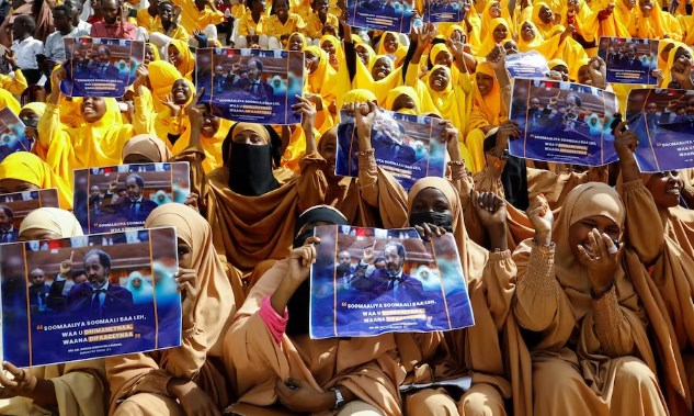 Somali women gather to march against the Ethiopia-Somaliland port deal at the Yarisow stadium in Mogadishu, Somalia on Jan. 3. (Feisal Omar/Reuters)
