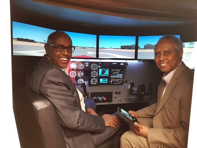 Ahmed Gure with fellow former Somali Airlines pilot Ibrahim Abikar Nur, demonstrating his enduring passion for aviation and innovation.