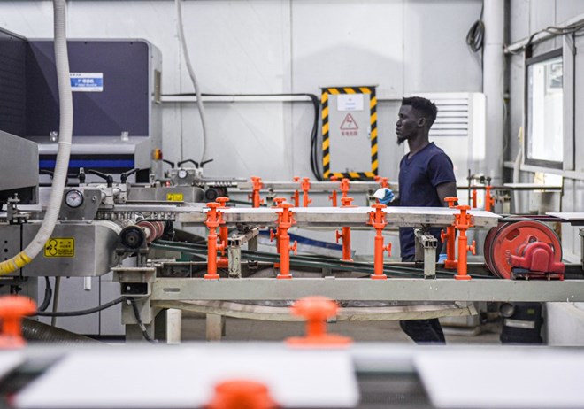 John Misiore, a 26-year-old sorter at KEDA, said the company's flagship products, including floor tiles, have boosted industrialization and construction of modern homes in the country.
