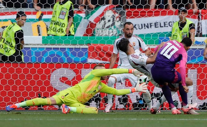 Germany came close with ten minutes played when Kai Havertz danced through Hungary's defence before testing goalkeeper Peter Gulacsi from a promising position.Gulacsi was hapless though ten minute later after Willi Orban fumbled the ball inside his own box, allowing Gundogan to set up for Musiala, who finished the job to become the first player to score two goals at Euro 2024.