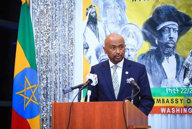 Ethiopian Ambassador to the United States , Seleshi Bekele, speaking on the occasion of Adwa Victory Celebration in Washington DC. (Photo : Ethiopians for Constitutional Monarchy)