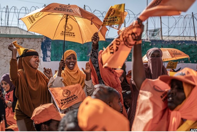 Supporters of the main opposition party Waddani attend a final campaign rally in Hargeisa on November 8, 2024. (AFP)
