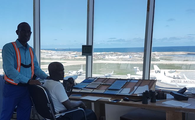 FILE PHOTO - Somali air control personnel after in the capital Mogadishu.