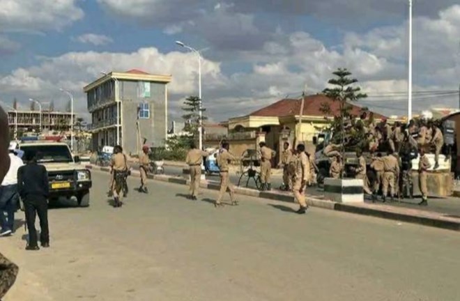 Security forces deploy outside the ONLF regional office in Jigjiga, Somali Regional State, following the disruption of a women’s meeting on April 24, 2025. The ONLF has accused the government of targeting peaceful gatherings as part of a broader crackdown on political dissent.