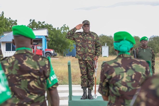 Newly appointed Kenyan Army Commander Lt Gen David Keter visits AUSSOM KDF troops in Somalia on July 13 to assess operations and boost their morale